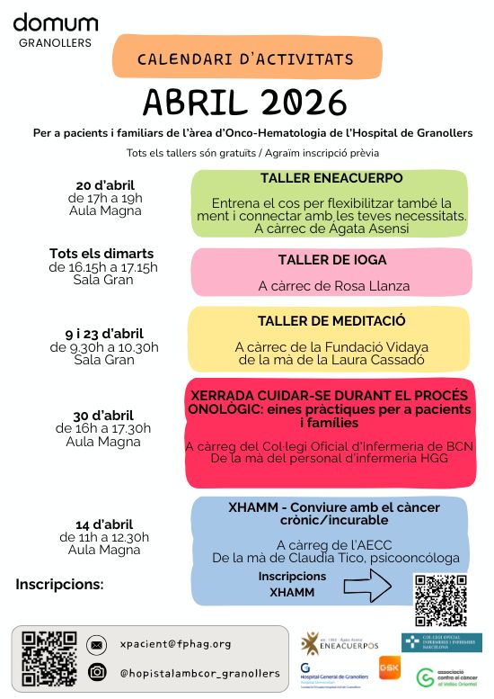 - Espai d’acollida d’agents comunitaris: AECC (Associació Espanyola Contra el Càncer), Rosmi Run, Associacions de Pacients, Oncovallès...