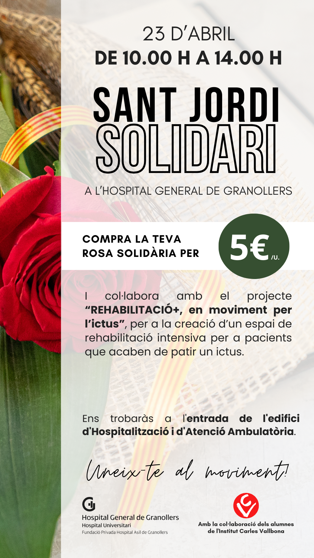 El 23 d’abril, de 10.00 h a 14.00 h, vine a l’Hospital General de Granollers i col·labora amb el nostre Sant Jordi comprant una rosa solidària per només 5 €.
