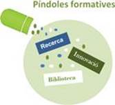 Les píndoles formatives volen ser un espai informatiu d'aquells dubtes i preguntes que es fan en relació a la Recerca, la Innovació i la Biblioteca. Aquesta informació periòdica, en format de butlletí, respon breument a qüestions diverses i posteriorment es presenten de manera presencial en format de sessió formativa.